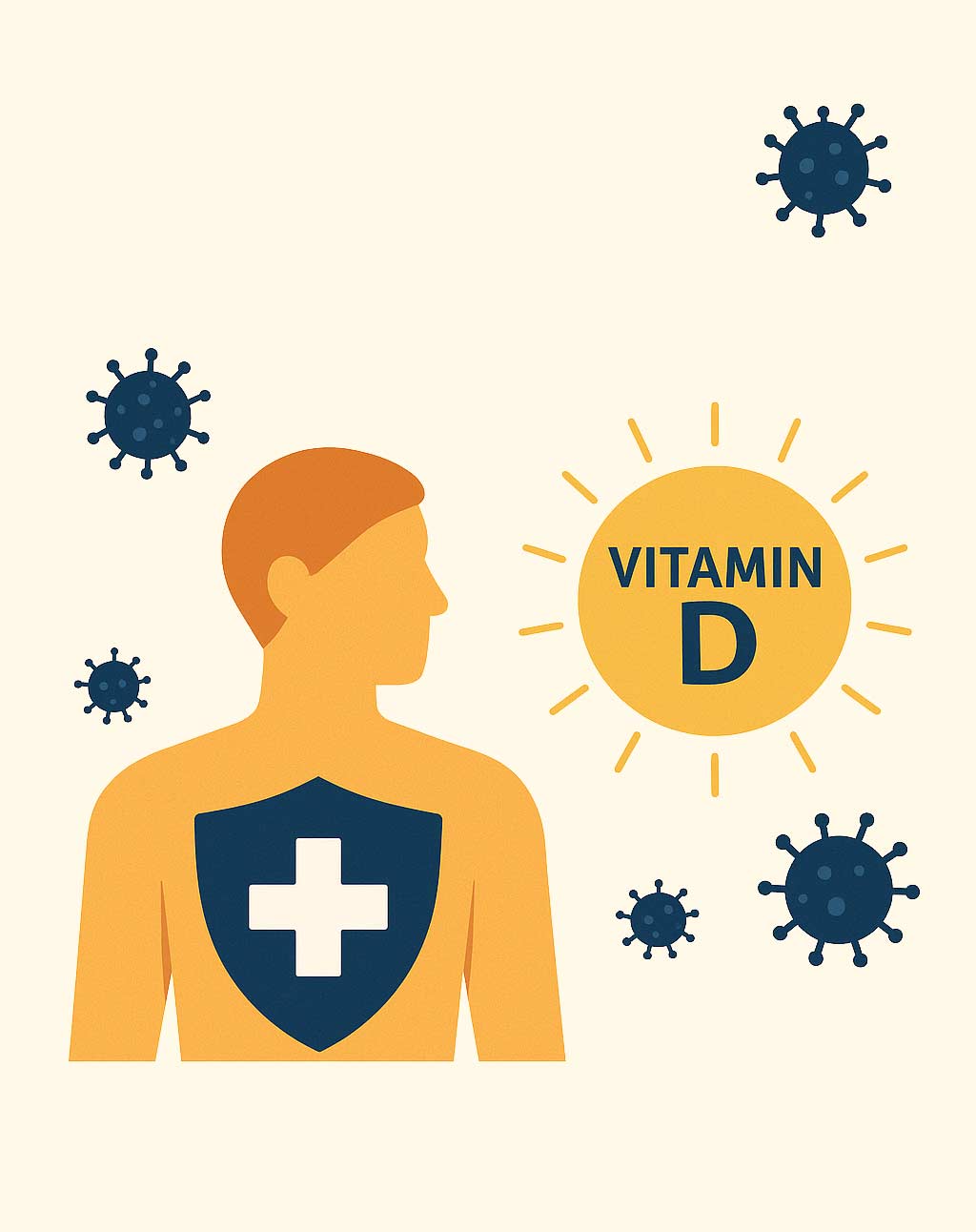 ویتامین D یکی از ویتامین‌های محلول در چربی است که از طریق نور خورشید، برخی مواد غذایی و مکمل‌ها تأمین می‌شود. این ویتامین نقش حیاتی در تنظیم پاسخ‌های ایمنی بدن ایفا می‌کند: