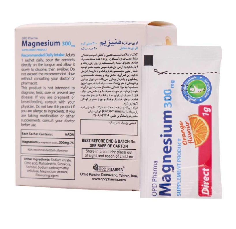 ویژگی های ساشه منیزیم 300 میلی گرم او پی دی فارما