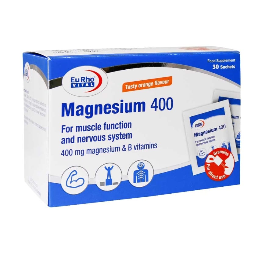 ساشه منیزیم 400 یوروویتال در عملکردهایی از جمله ساخت پروتئینها، بهبود عملکرد عضلات و اعصاب، کنترل قند و تنظیم فشار خون در بدن نقش دارد. منیزیم همچنین برای تولید انرژی نیز مورد نیاز بوده و در بهبود ساختار استخوان، سنتز DNA و RNA مشارکت مینماید. کمک به پیشرفت انتقال پیامهای عصبی و رفع اسپاسم و گرفتگی عضلات نیز از دیگر عملکردهای منیزیم در بدن است. برخی از مطالعات نشان داده مصرف قرص منیزیم حتی در کاهش تعداد حملات میگرن و تسکین علائم سندرم پیش از قاعدگی تاثیر چشمگیری دارد.