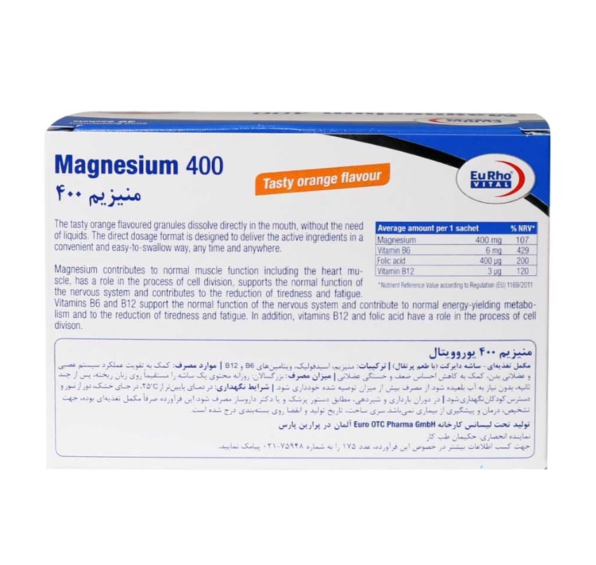 ویژگی های ساشه منیزیم 400 یوروویتال