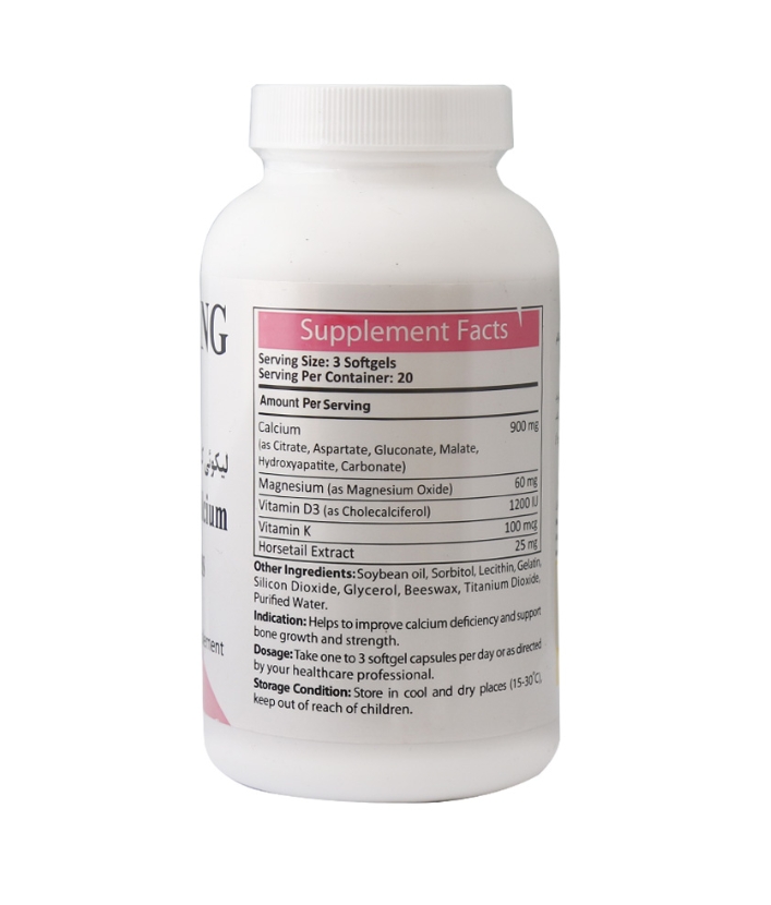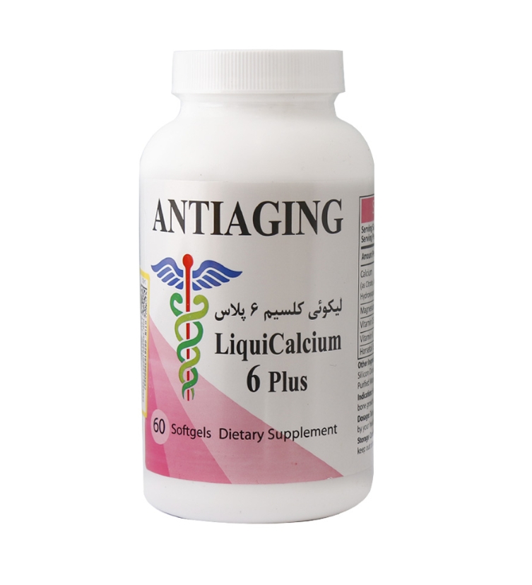 سافت ژل لیکوئی کلسیم 6 پلاس آنتی ایجینگ مکملی منحصر به فرد برای تقویت استخوانها و جلوگیری از بروز بیماری پوکی استخوان است. این محصول تنها مکمل شامل 6 ملح مختلف کلسیم با جذب بالا است که به خاطر وجود سیترات کلسیم و منیزیم در اجزای خود، عوارضی همچون یبوست و نفخ را به دنبال ندارد و برای کسانی که مشکلات کلیوی دارند، مناسب است. این محصول به صورت سافت ژل بوده و به همین دلیل دارای بلع آسان و عوارض گوارشی کمتری به ویژه در سالمندان برخوردار است.