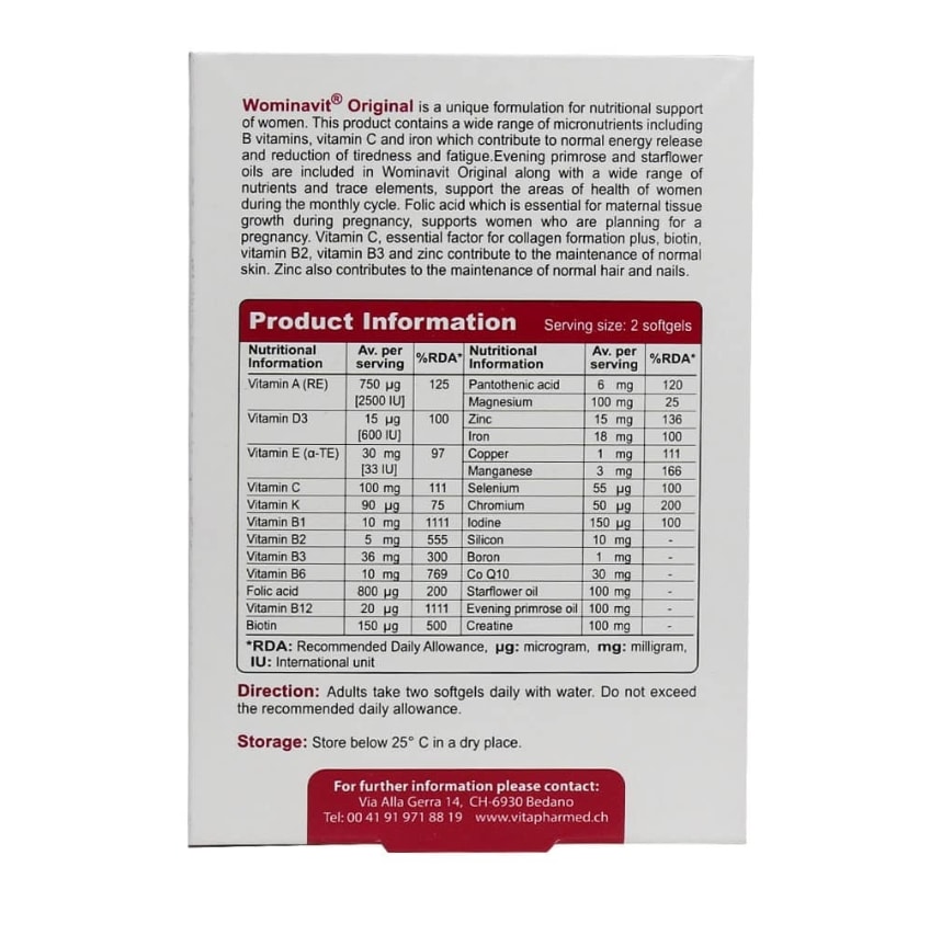 سافت ژل ومیناویت اوریجینال ویواتیون با داشتن 27 نوع ویتامین، مواد معدنی و روغنهای گیاهی ضروری برای حفظ سلامتی و شادابی بانوان، فرموله شده است. این مولتی ویتامین به تولید انرژی و کاهش خستگی و حفظ سلامت پوست، مو و ناخن کمک میکند. این افراد برای بانوان زیر 50 سال مناسب است.