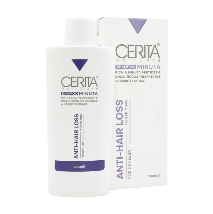 شامپو ضد ریزش مینوتا سریتا مناسب موهای خشک از برند ایرانی سریتا است. این شامپو غنی از پپتیدهای استخراج شده از مخمر پیکیامینوتا، پلی فنولهای DHQG و EGCG2 و عصاره ریشه هویج است. با توجه به ترکیبات این شامپو از قدرت بالایی در احیا و بازسازی تارهای مو دارد. این شامپو از محصولات ضد ریزش است که علاوه بر افزایش جریان گردش خون به منظور تحریک رشد مو، رطوبت رسان است و به واسطه دارا بودن عصاره هویج خشکی مو و پوست سر را رفع میکند.