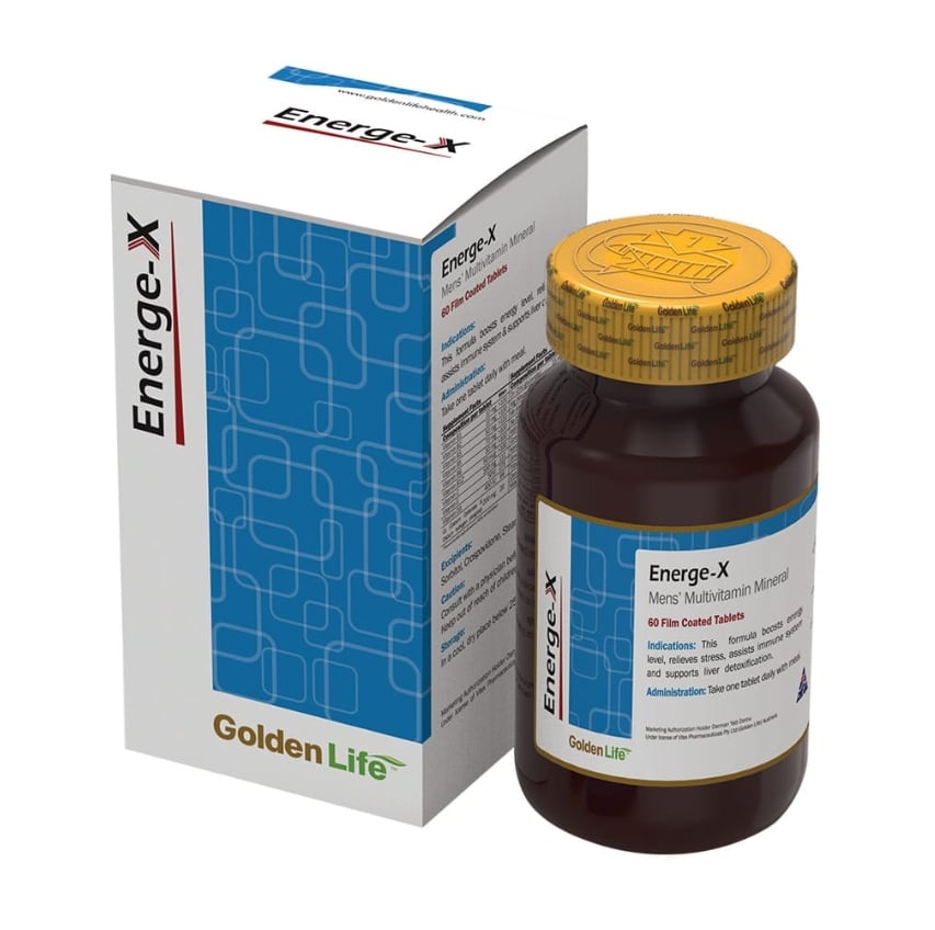 قرص انرژکس گلدن لایف با تامین انواع ویتامینها و املاح معدنی مورد نیاز در کنار گیاهان دارویی اختصاصی، نقش مهمی را در حفظ و ارتقاء سلامت عمومی بدن و افزایش قدرت بدنی آقایان ایفا میکند. این مکمل برای افزایش انرژی بدن، تقویت عضلات، بهبود عملکرد ورزشی و جلوگیری از ریزش مو در آقایان بسیار موثر است. مولتی ویتامین انرژکس مخصوص آقایان تهیه شده و با فرمولاسیون کامل جزء پرمصرفترین مولتی ویتامین مخصوص آقایان در بازار است. energe-x تحت لیسانس شرکت وایتکس (گلدن لایف) استرالیا و دارنده پروانه ساخت شرکت درمان یاب دارو است.