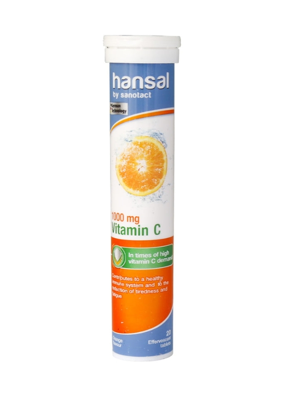 قرص جوشان ویتامین C 1000 میلی گرم هانسال تحت لیسانس آلمان یک مکمل غذایی ایده آل جهت تقویت سیستم ایمنی و تامین ویتامین ث مورد نیاز بدن است. این محصول سرشار از ویتامین ث و با طعم مطلوب پرتقال عرضه شده است. این قرص حاوی 1000 میلی گرم ویتامین ث بوده که نیاز روزانه ما را به این ویتامین تامین میکند. بدن ما قادر به تولید و ذخیره سازی ویتامین ث نبوده و به همین علت به مکملهای حاوی این ویتامین به شدت احتیاج است.