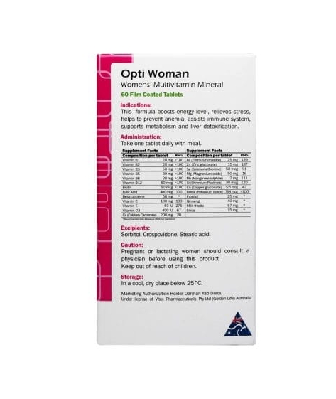 قرص opti woman مکمل غذایی بوده و برای تشخیص، پیشگیری یا درمان نیست.