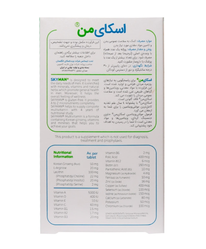 قرص sky man برای کودکان زیر 12 سال مناسب نیست. چرا که ممکن است با افزایش غلظت برخی از ویتامینها و مینرالها آسیب رسان باشد.