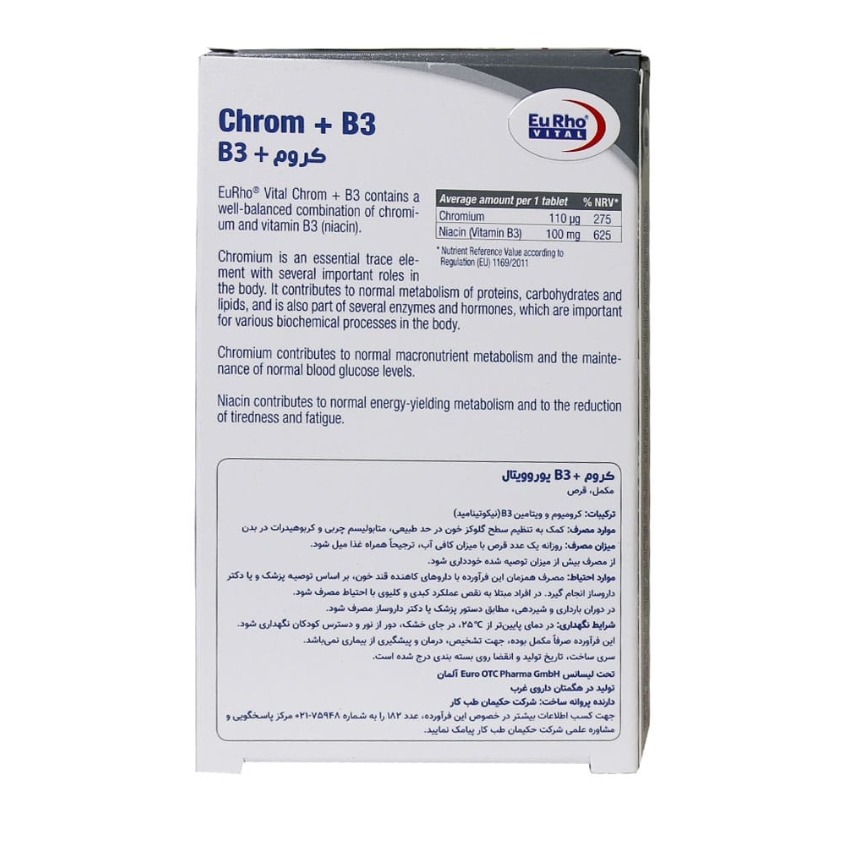 ویژگی های قرص کروم و ویتامین B3 یوروویتال