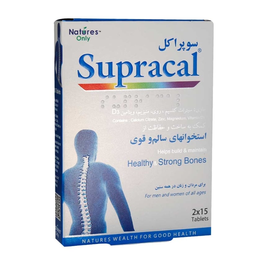 روزانه 2 عدد قرص سوپرا کل نیچر اونلی همراه با غذا یا 1.5 ساعت بعد از غذا برای جذب بهتر کلسیم مصرف شود.