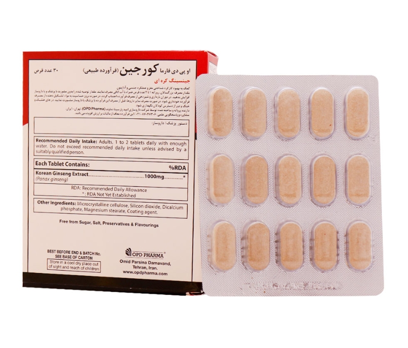 قرص کورجین او پی دی فارما 30 عدد (عصاره جنسینگ )