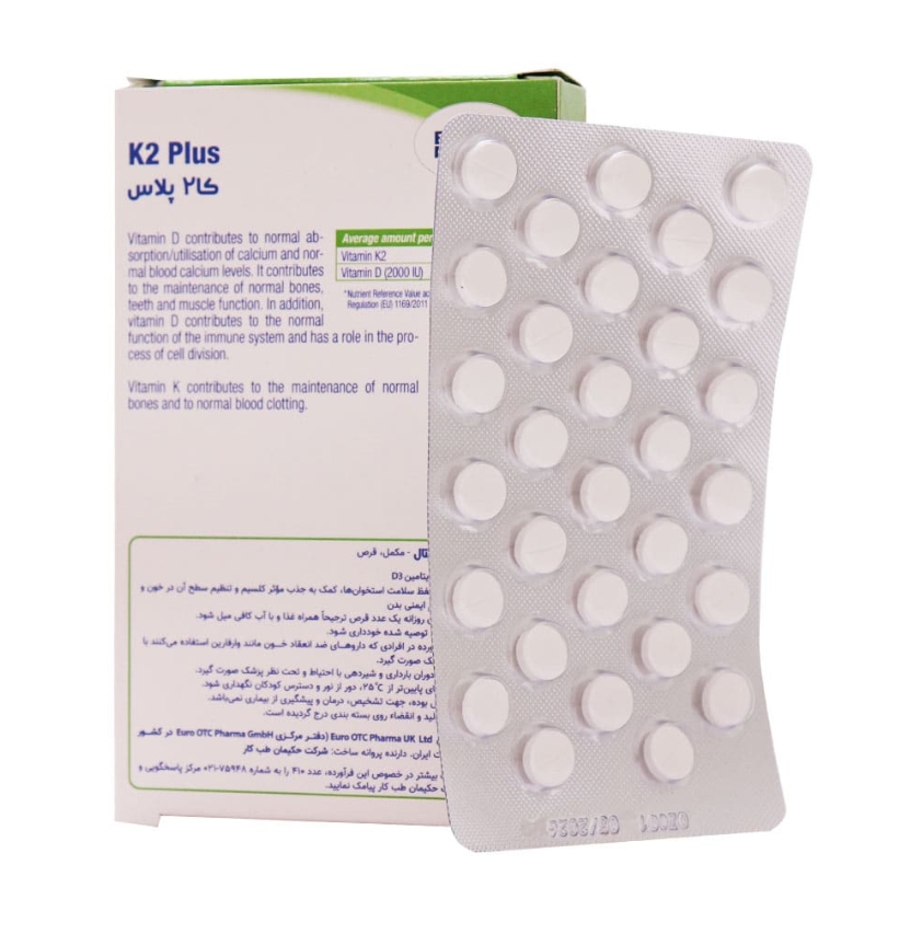 قرص کا2 پلاس یوروویتال یک مکمل غذایی با ترکیبی از ویتامین K2 و دیگر مواد مغذی است که به حفظ سلامت استخوانها، جذب موثر کلسیم و تنظیم سطح کلسیم در خون کمک میکند. این محصول با تقویت سیستم ایمنی بدن، نقش مهمی در بهبود کلی سلامت ایفا مینماید و برای افرادی که به دنبال افزایش سلامت استخوانها و پیشگیری از بیماریهای مرتبط با کمبود کلسیم هستند، بسیار مناسب است. ترکیبات موجود در قرص کا2 پلاس یوروویتال به بهینه سازی جذب و استفاده از کلسیم در بدن کمک نموده و به حفظ تعادل کلسیم در خون کمک میکنند که این امر برای عملکرد صحیح استخوانها و سیستم ایمنی الزامی است.
