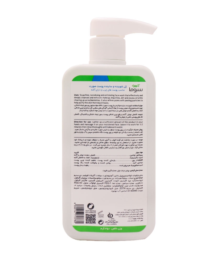 ترکیبات ژل شوینده و ساینده پوست صورت سبوما آردن