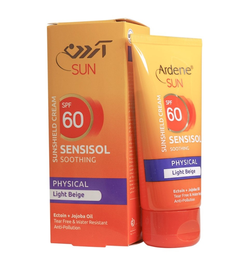 کرم ضد آفتاب رنگی SPF60 آردن فاقد جاذب های شیمیایی است و با قدرت حفاظتی بسیار بالا برای پوست‌های حساس و تحریک‌شده بسیار مناسب است. این کرم در برابر آفتاب یا درمان با لیزر، پیلینگ شیمیایی و درم ابرژن، در تمام طول موج‌های پرتوهای ماورای بنفش موثر است. در فرمولاسیون آن از بازتاب‌دهنده‌های معدنی و طبیعی پرتوهای مضر نور آفتاب (مثل تیتانیوم دی اکساید و زینک اکساید) با خلوص و کیفیت بالا و دانه‌بندی بسیار ریز (Ultra-Fine) استفاده شده است. همین ویژگی سبب شده تا پس از استفاده از محصول، از تشکیل لایه‌ای سفید رنگ با ظاهری نامناسب بر روی پوست جلوگیری شود. این کرم با تعریق و شستشو با آب معمولی، یا زمان انجام فعالیت های ورزشی از سطح پوست پاک و زدوده نمی‌شود.