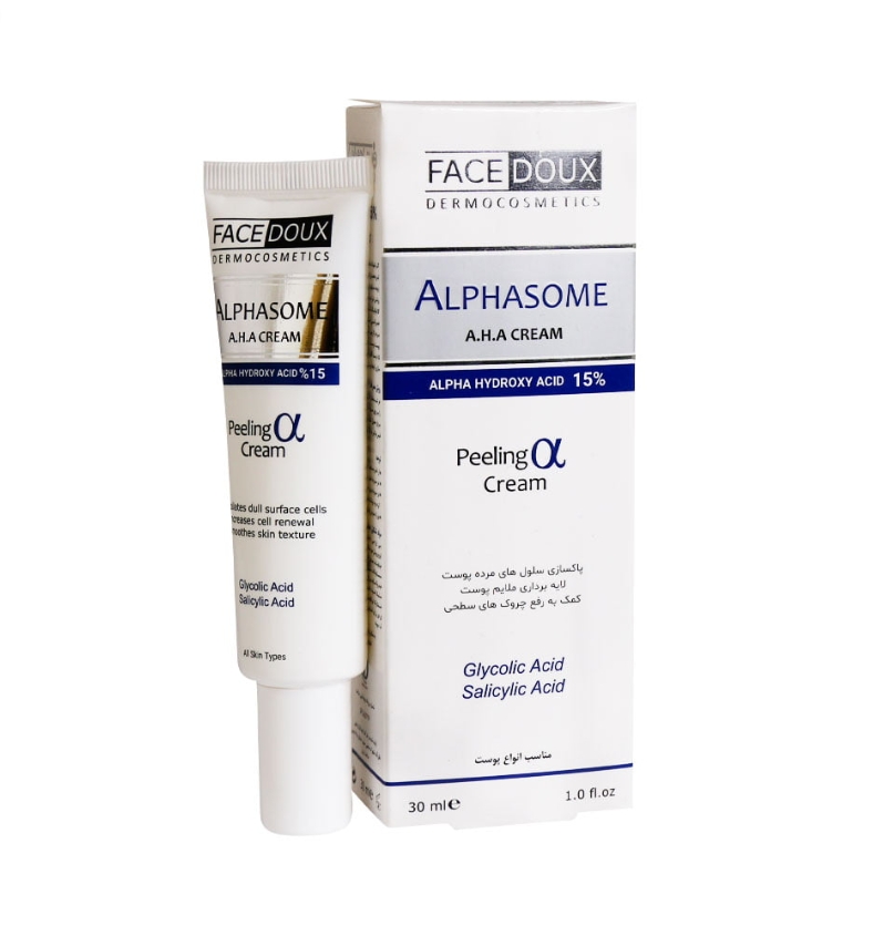 کرم لایه بردار فیس دوکس مدل Alphasome تنها در ده دقیقه با خاصیت لایه برداری ملایم، خستگی و بی روحی را از پوستتان زدوده و سلولهای مرده پوست را بر میدارد و لکهای تیره را روشنتر میکند. استفاده از این کرم سبب لطافت و روشنی هرچه بیشتر پوست شما میشود. گلایکولیک اسید موجود در محصول لایه بردار پوست فیس دوکس که نوعی آلفا هیدروکسی اسید است، به مرور آزاد شده و سلولهای مرده را از بین میبرد تا سلولهای جوانتری به سطح پوست برسند. این ویژگی سبب تجربه طراوت و لطافت برای شما خواهد شد. کرم 15 درصد آلفازوم فیس دوکس به تشکیل سلولهای جوانتر و کلاژن سازی و ایجاد پوستی روشنتر و نرم کمک میکند.