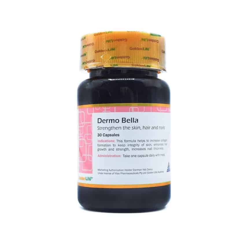 پوست، مو و ناخنها علاوه بر جنبه زیبایی، منعکس کننده وضعیت درونی و تغذیه ای بدن هستند. استرس، بیماری و مصرف برخی داروها، تغذیه نامناسب، اختلالات هورمونی و استفاده مکرر از مواد آرایشی و شیمیایی منجر به از بین رفتن سلامت و شادابی پوست، ریزش مو و شکنندگی و آسیب ناخنها میشوند. کپسول درموبلا گلدن لایف با تامین انواع ویتامینها و املاح معدنی مورد نیاز، نقش مهمی را در مراقبت از پوست و افزایش استحکام مو و ناخنها ایفا میکند. این محصول بهترین مولتی ویتامین برای پوست و مو به شمار میآید.