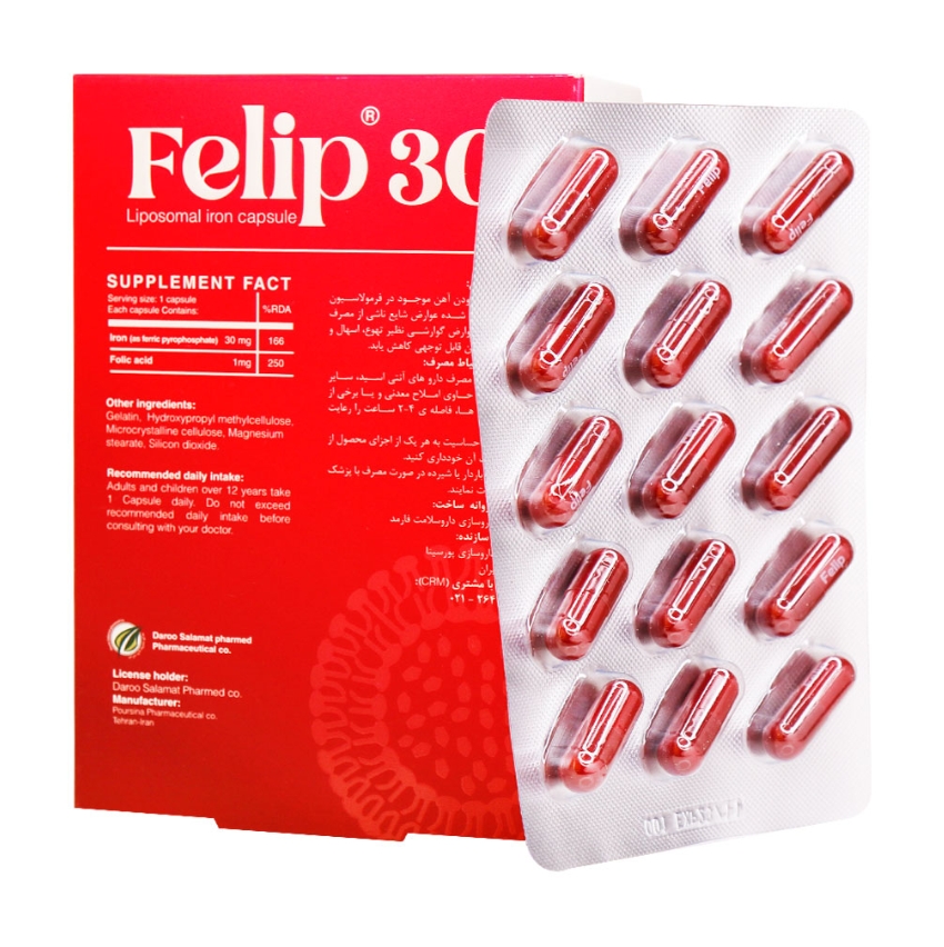 کپسول فلیپ 30 های هلث حاوی 30 میلیگرم آهن به فرم لیپوزومال و 1 میلیگرم فولیک اسید است. استفاده از این مکمل سبب جذب بیشتر آهن در بدن و در نتیجه درمان کم خونی ناشی از فقر آهن میشود. شاید برای شما هم پیش آمده است که بعد از مصرف مکملهای آهن دچار حالت تهوع، اسهال و سرگیجه شدهاید. اما نگران نباشید چراکه کپسول فلیپ 30 یک محصول لیپوزومال است.