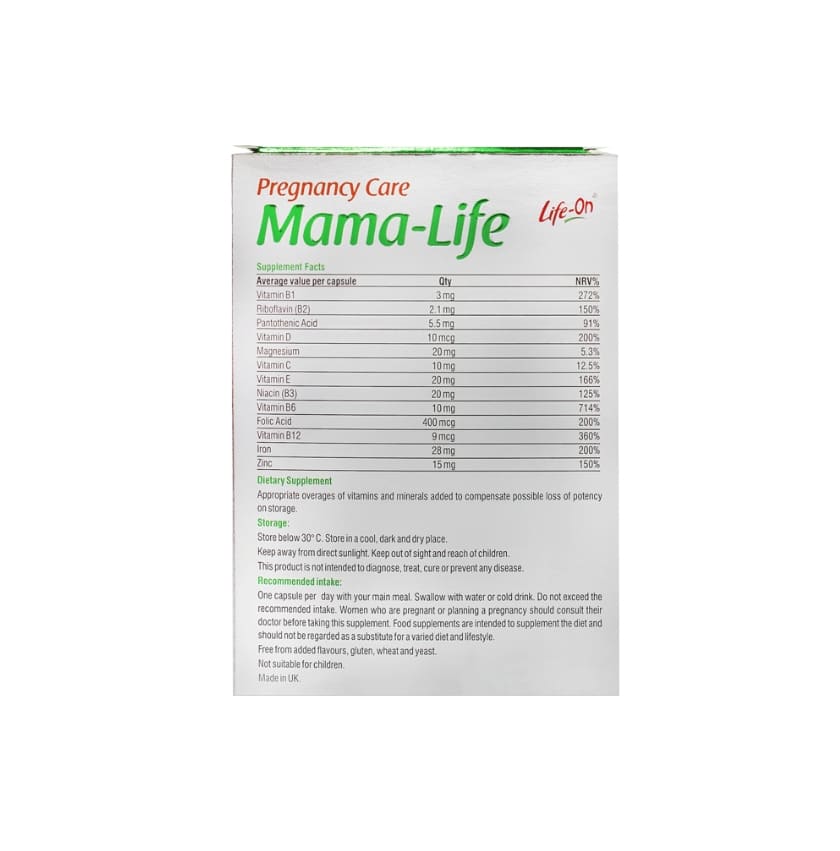 کپسول ماما لایف لایف آن مولتی ویتامین مینرالی برای خانم های باردار است. این محصول همچنین مناسب برای پیش از بارداری، در طول بارداری و پس از بارداری است. ویتامین ها نقش اساسی و کلیدی در هضم و جذب مواد مغذی و کالری زا، یعنی قند، چربی و پروتئینها دارند. به همین علت در سلامت مادر و جنین نقش دارند. مادر در بارداری، این ویتامینها را از راه خوردنیها و مکمل ها دریافت خواهید کرد. دو دسته کلی ویتامینها شامل ویتامین های محلول در آب، یعنی ویتامینهای B و C و دسته دوم ویتامینهای محلول در چربی یعنی ویتامینهای A، D، E، K هستند.